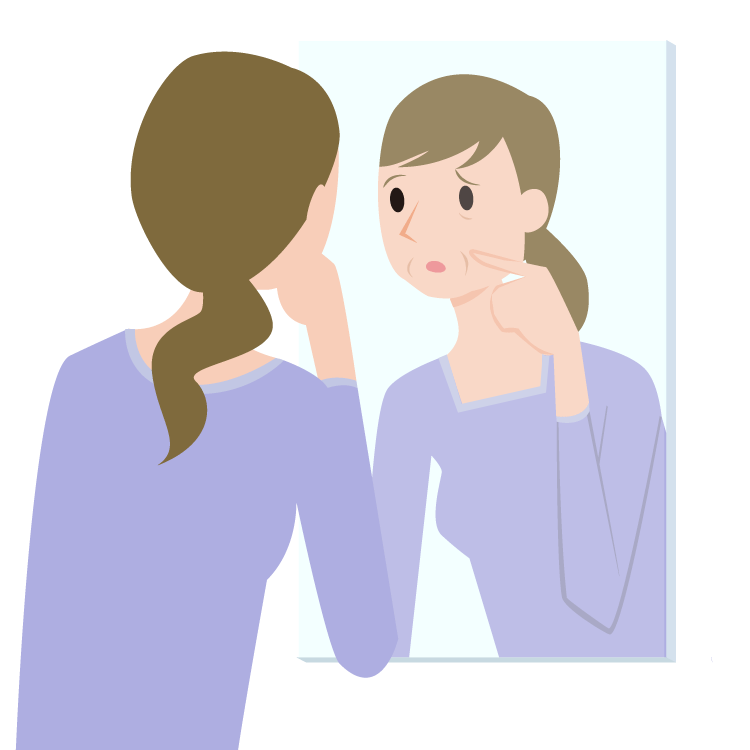 水分がなくなって、肌のハリや弾力が失われ、皮膚と筋肉との結合がゆるむことで起こります。